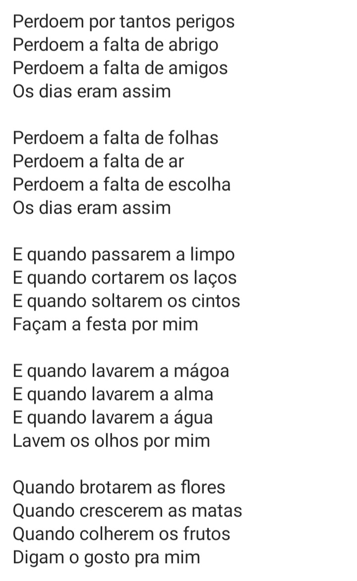"Poderemos não ser os únicos náufragos do amor..." "Não é que eu queira reviver nenhum passado E revirar o sentimento, re...